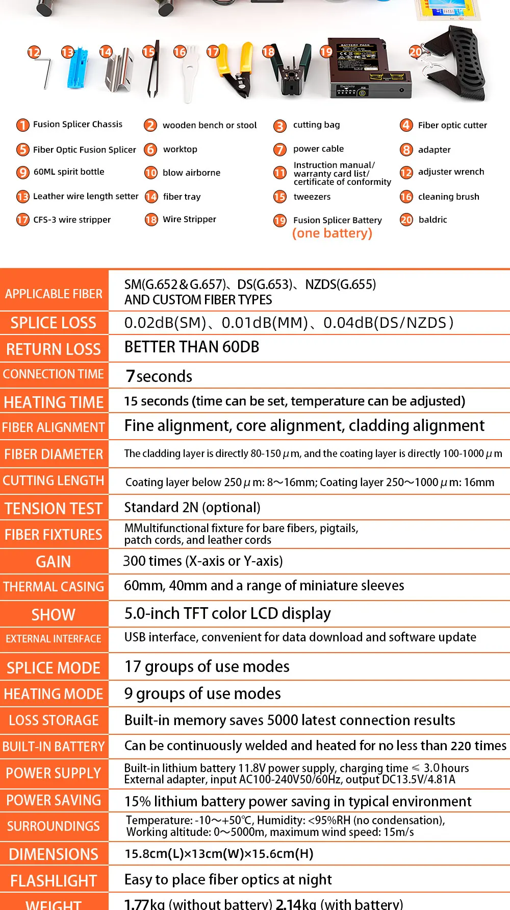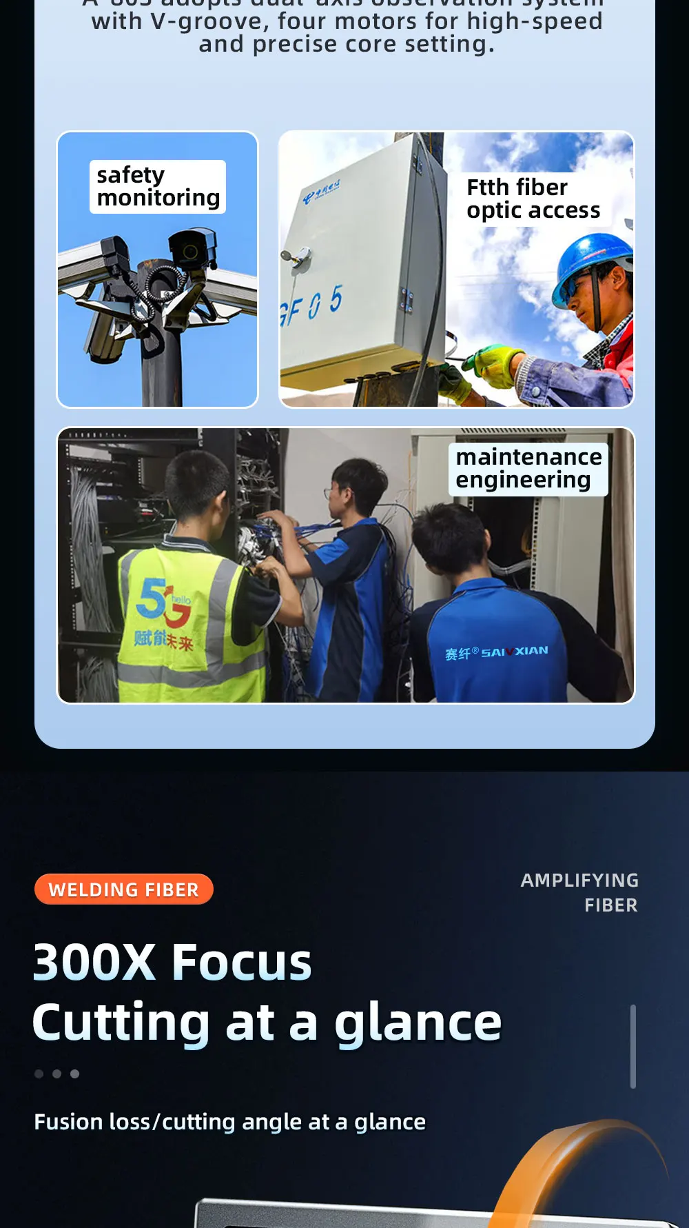 Suitable for fiber type: SM (G.652 & G.657) fiber optic cable/patch cord/tail fiber